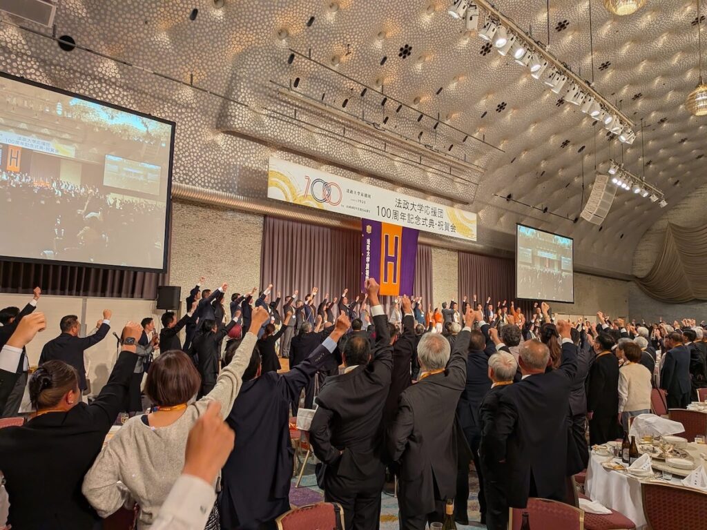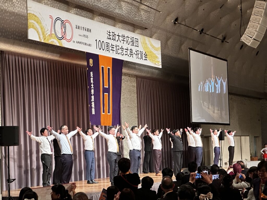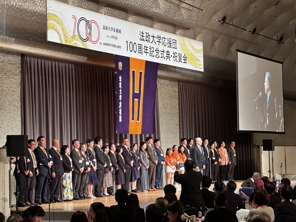 2025年11月16日(日)、法政大学応援団の創立100周年を記念する式典・祝賀会がグランドプリンスホテル新高輪にて盛大に開催され、法友野球倶楽部からも22名の方々が出席されました。
