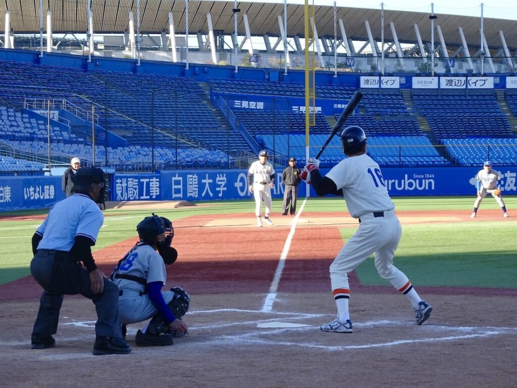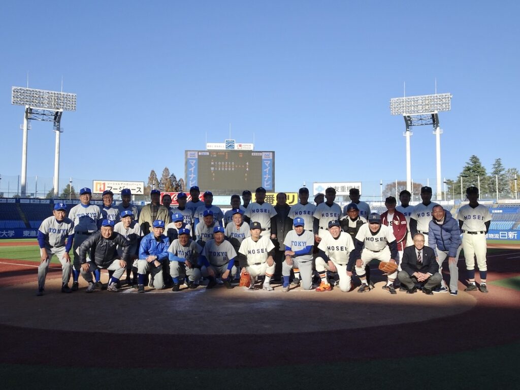 12月4日(木)、神宮球場にて六球会野球大会が開催されました。 法政大学OBチームは、東京大学OBチームと対戦し、4対4の引き分けという結果となりました。